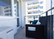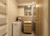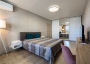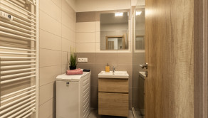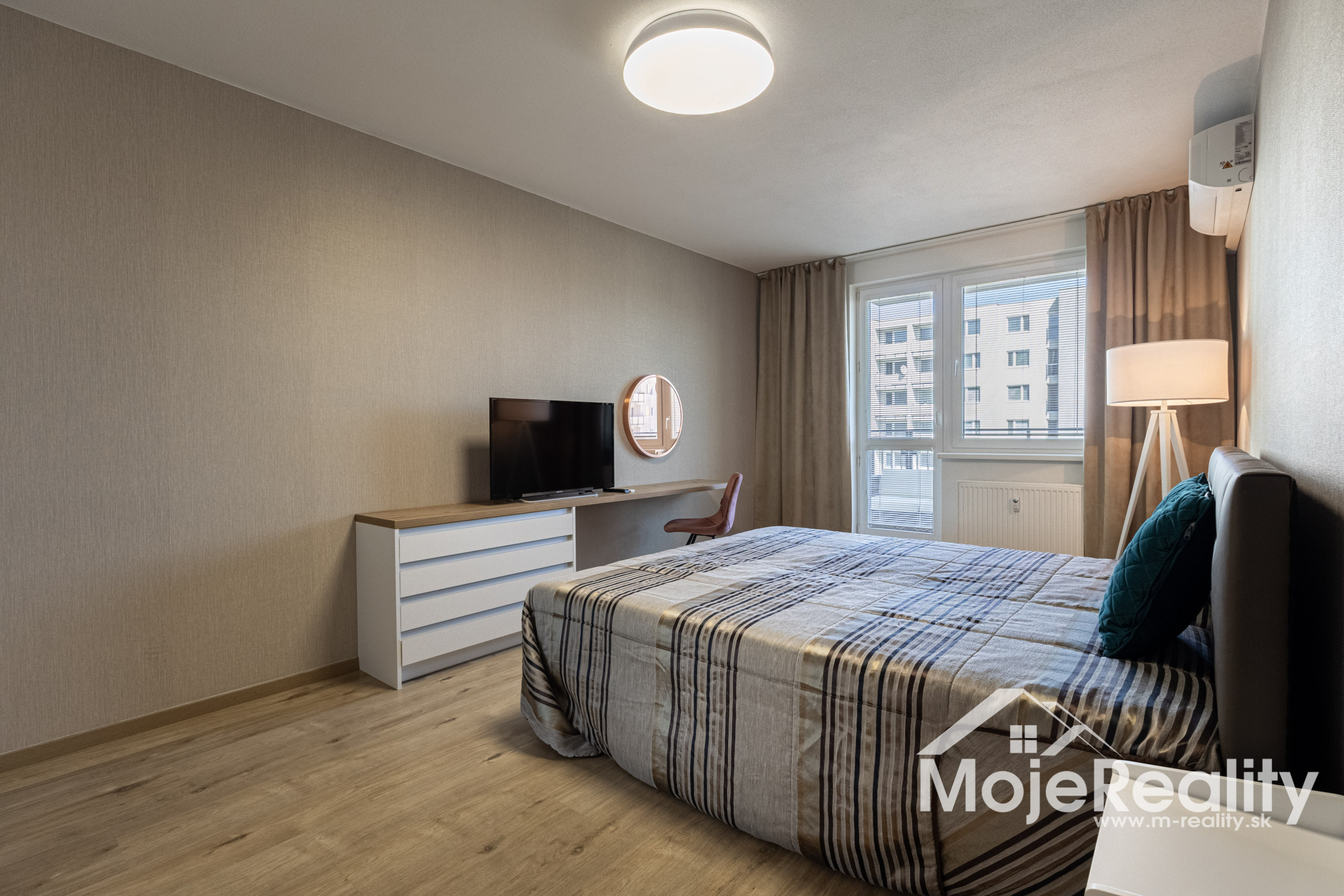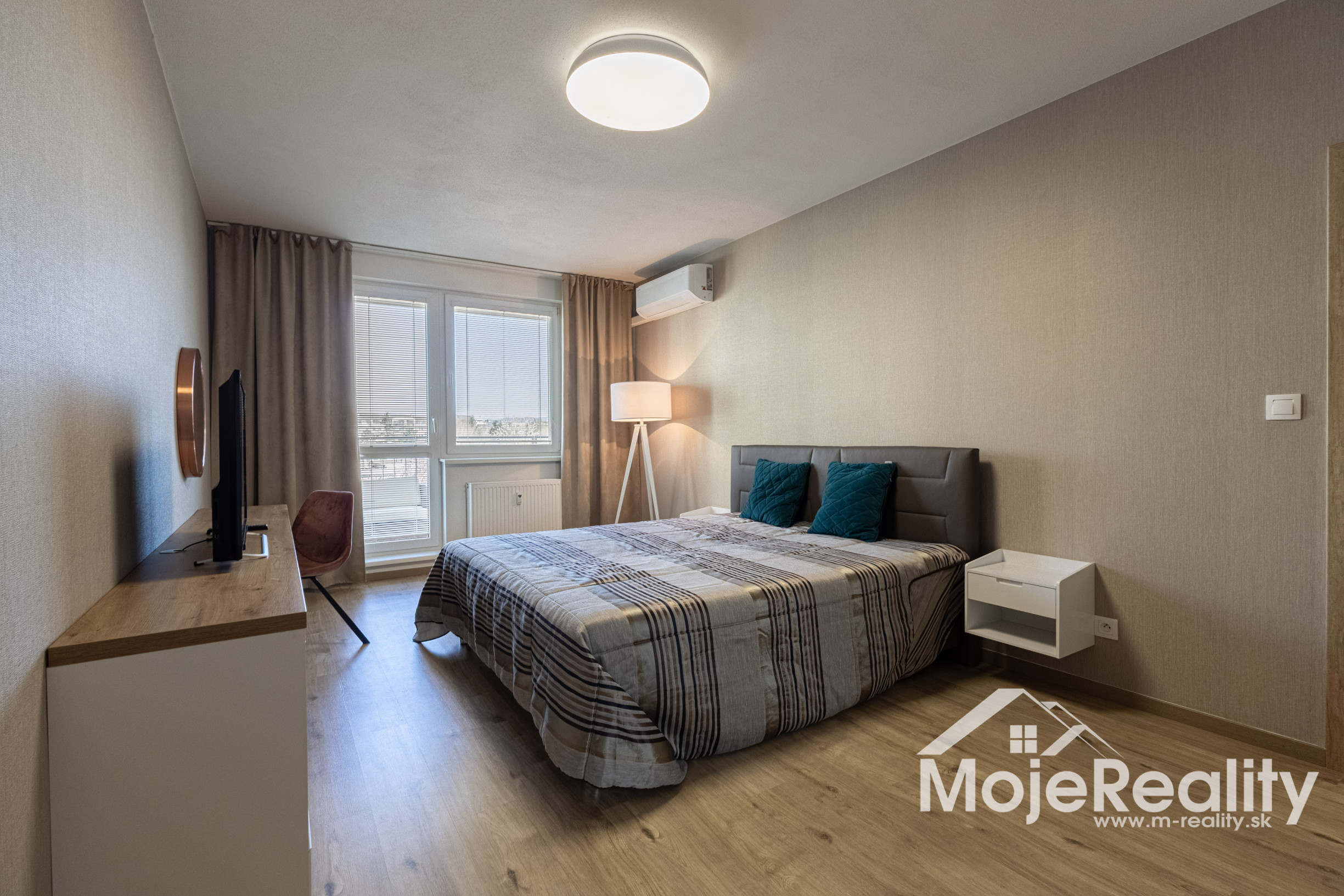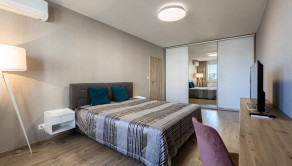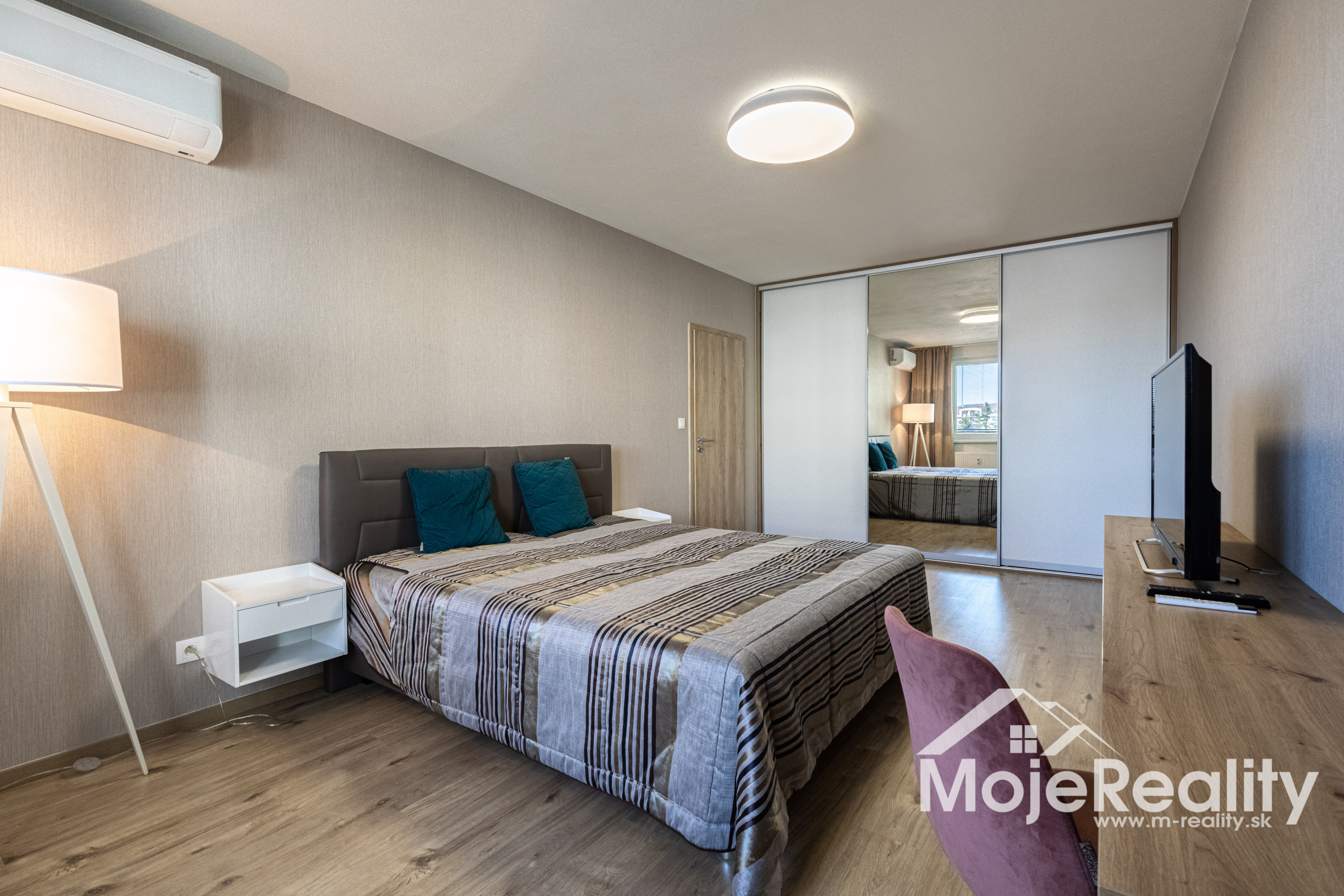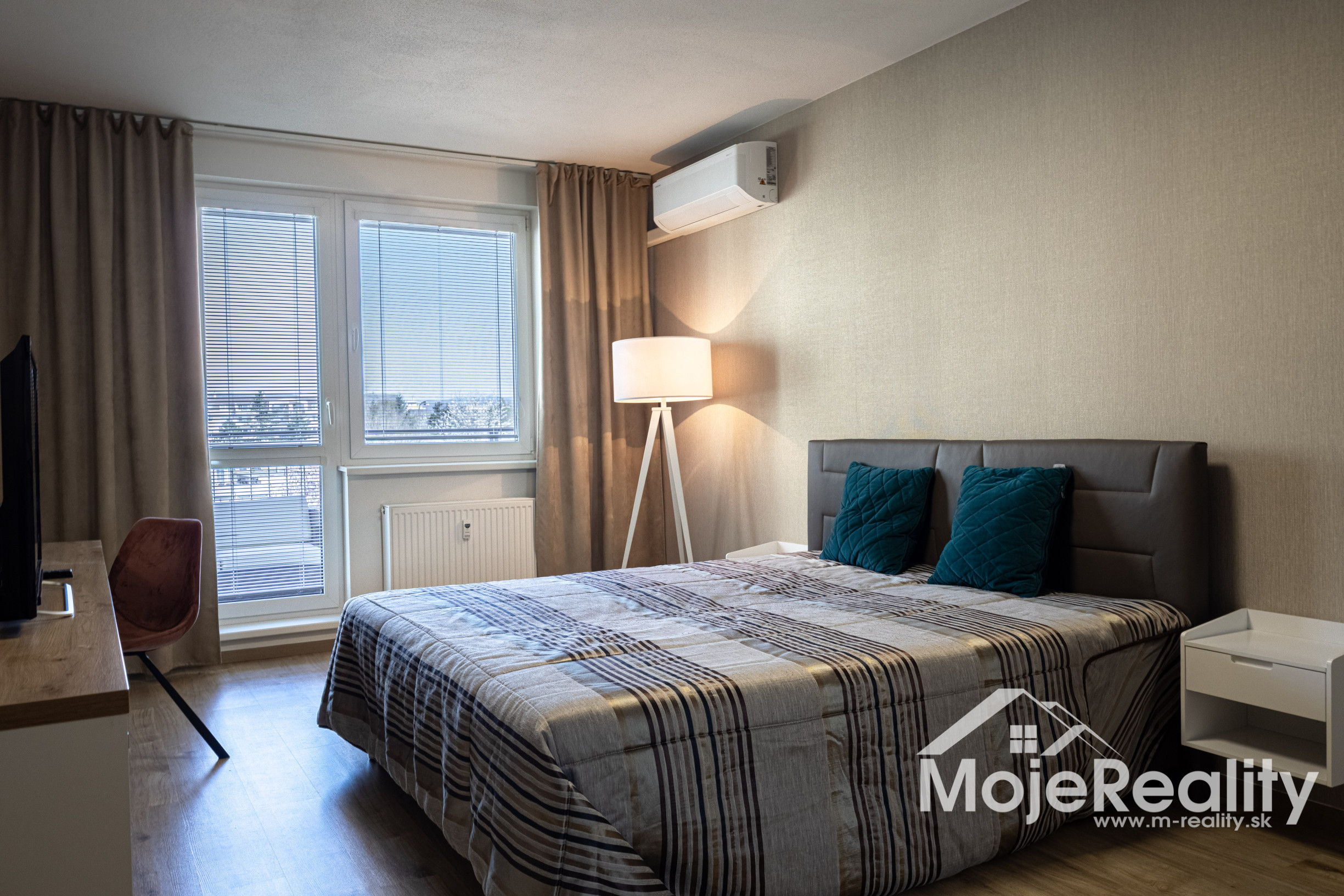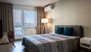 Samozrejmosťou je klimatizácia v obývacej izbe aj spálni, ktorá zabezpečí príjemnú klímu počas celého roka. Praktické dispozičné riešenie zahŕňa samostatnú kúpeľňu so sprchovým kútom a oddelené WC.