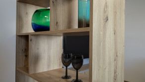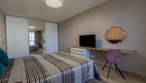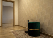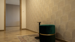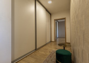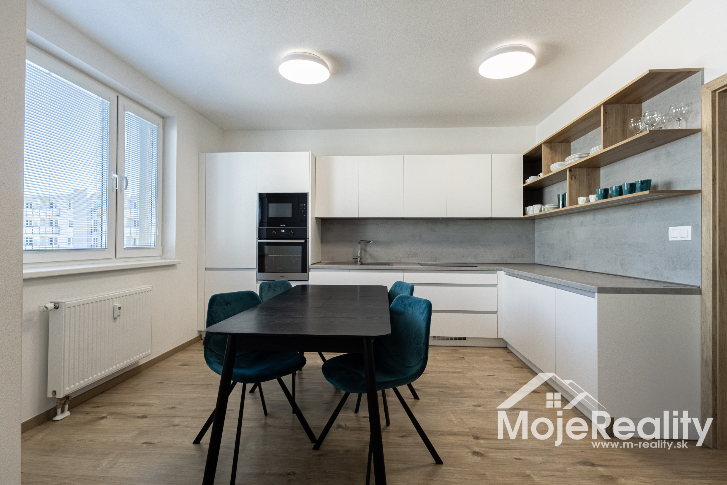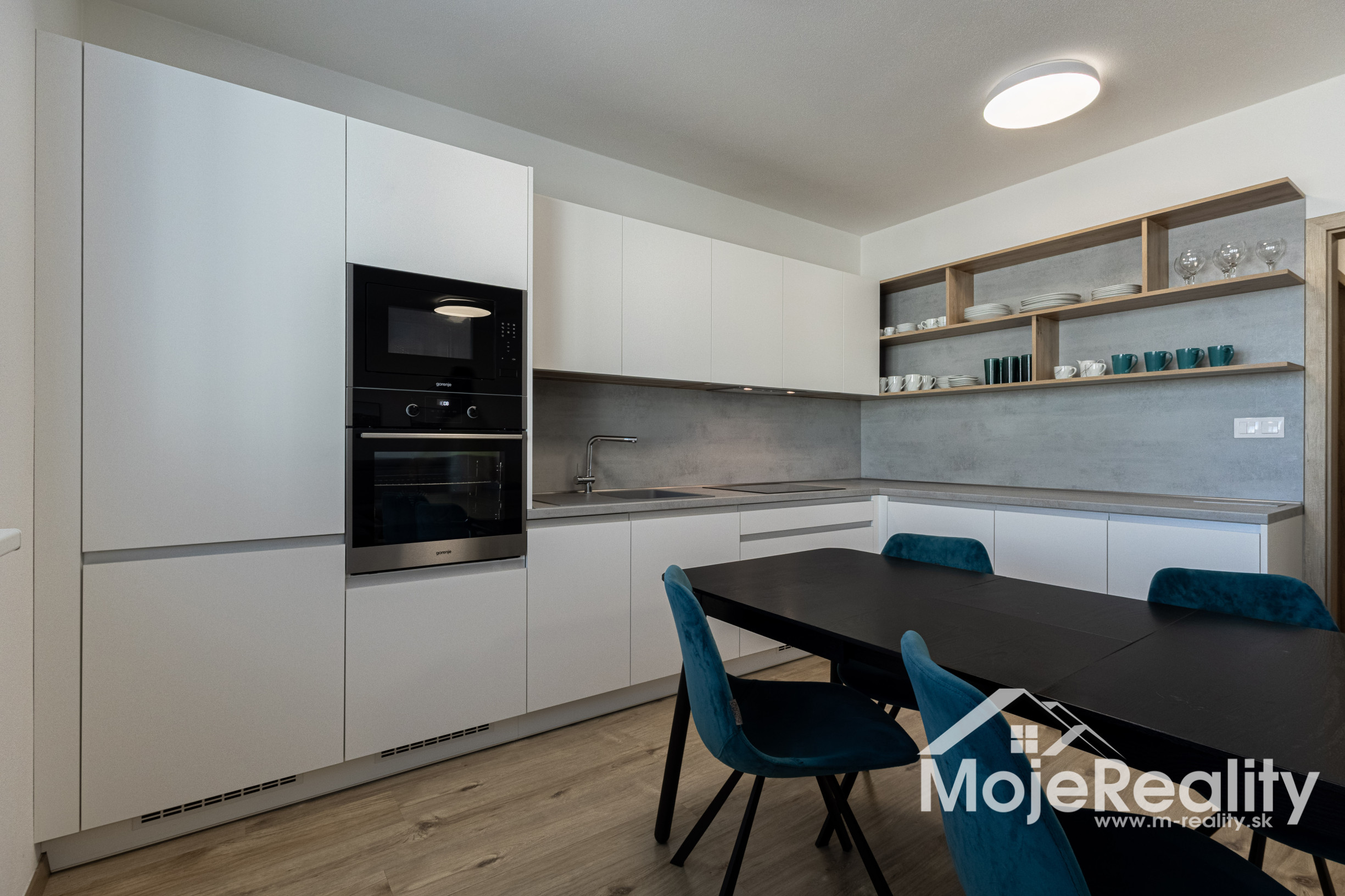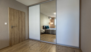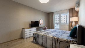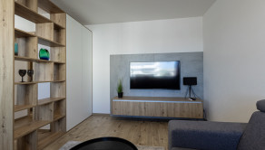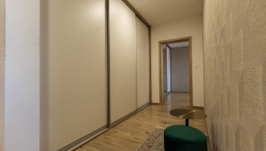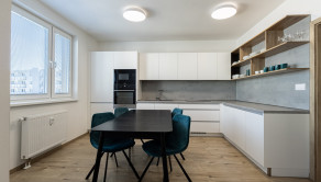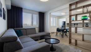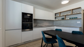 Interiér bytu bol navrhnutý s dôrazom na detail, funkčnosť a estetiku. Dominantou je moderná kuchyňa na mieru so vstavanými spotrebičmi, plynule prepojená s obývacou časťou. Elegantná spálňa s dostatkom úložného priestoru ponúka priamy vstup na balkón. Byt je plne zariadený kvalitným nábytkom a pripravený na okamžité bývanie.